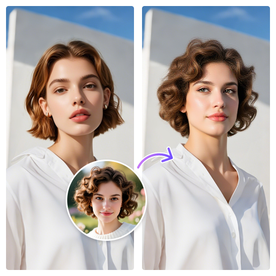 사진에서 머리 전체를 손쉽게 교체하세요. Vidqu 머리 교체를 통해 온라인에서 무료로 재미있는 콘텐츠를 만들어보세요.